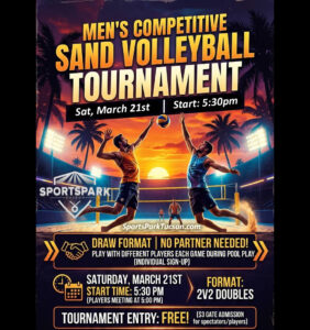 Mar 21st Sand Volleyball Doubles Draw Tournament Men’s 2v2